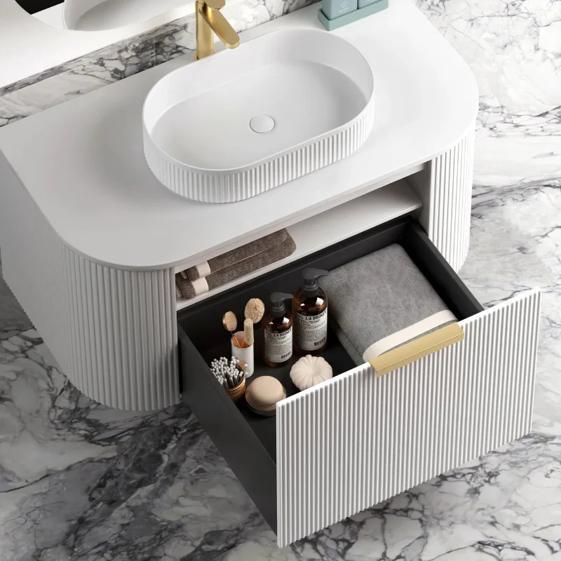 Otti Bondi 1200 Curved Matte White Oak Wall Hung VanityÂ