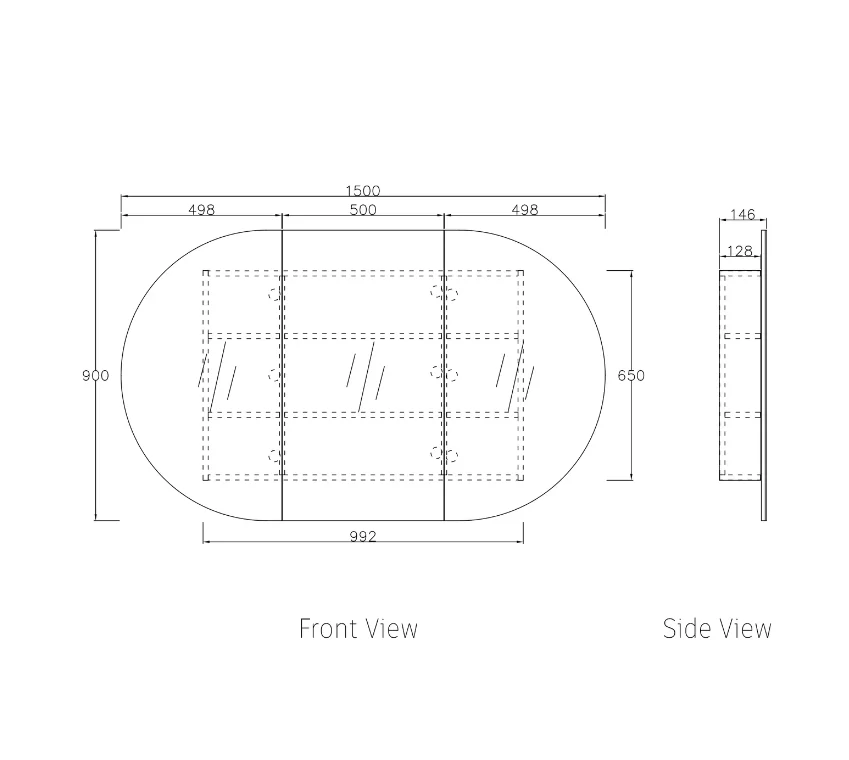 Bondi 1500 Matte White Oval Pill Shaving Cabinet—
