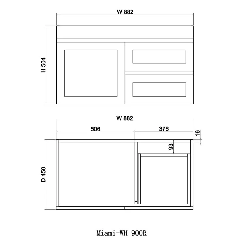 Miami 900 Matte White Wall Hung Vanity - Right Hand Drawers—